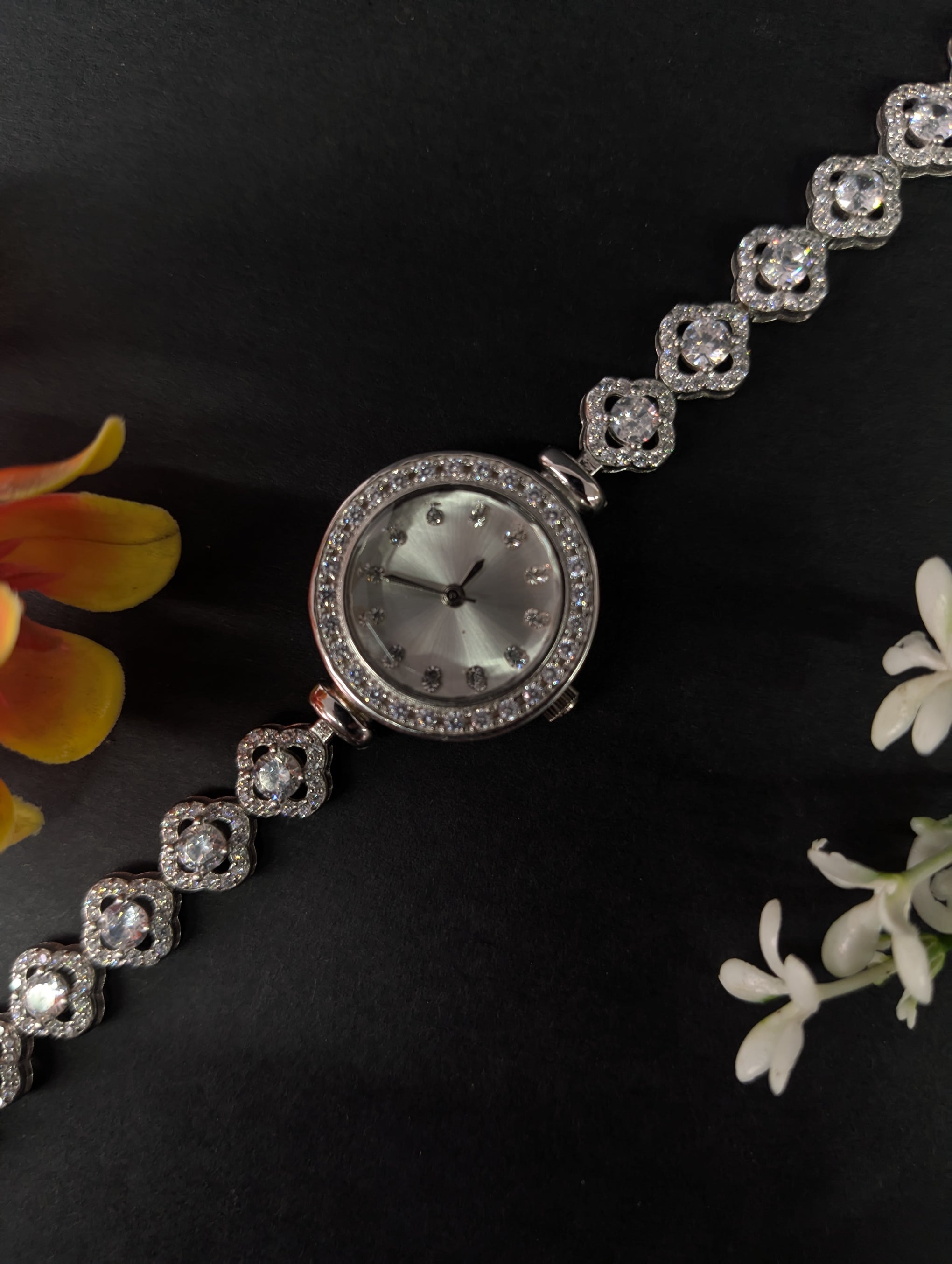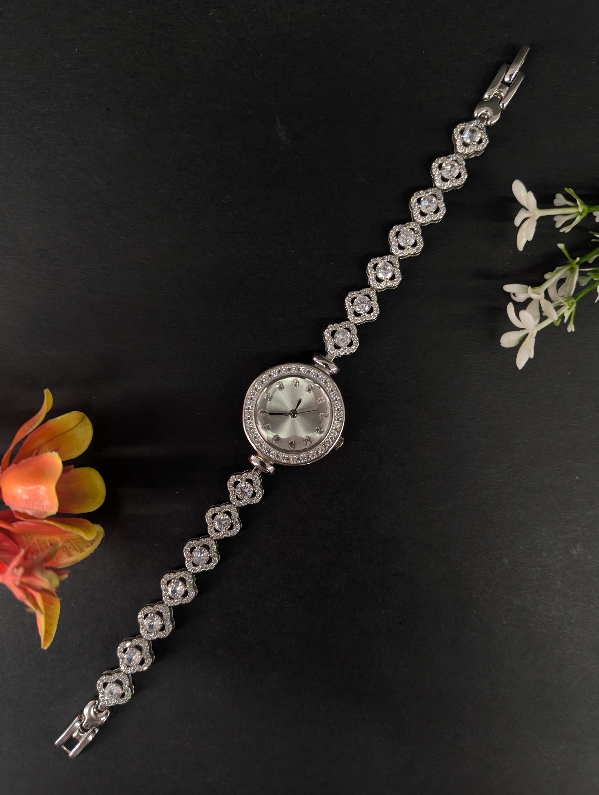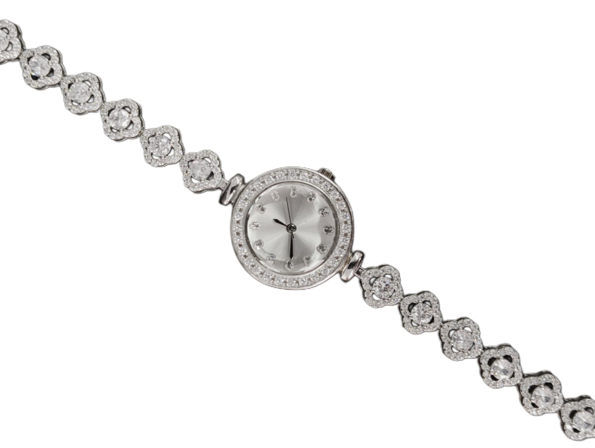 How to Style: This watch is a standalone masterpiece. Wear it as your primary accessory with a cocktail dress to showcase its intricate floral links. It also pairs beautifully with our 92.5 Sterling Silver Tennis Bracelet for a cohesive, "iced-out" wrist stack.