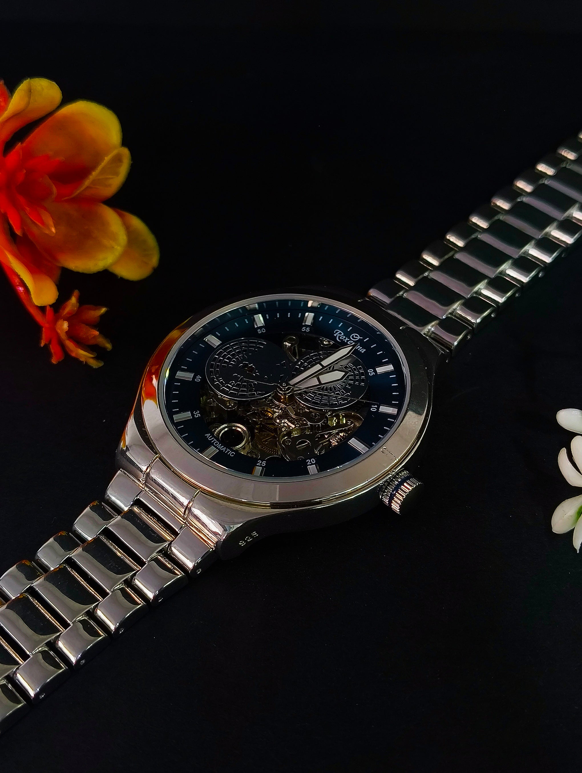 RUKMI Men’s 92.5 Sterling Silver Automatic Exhibition Watch