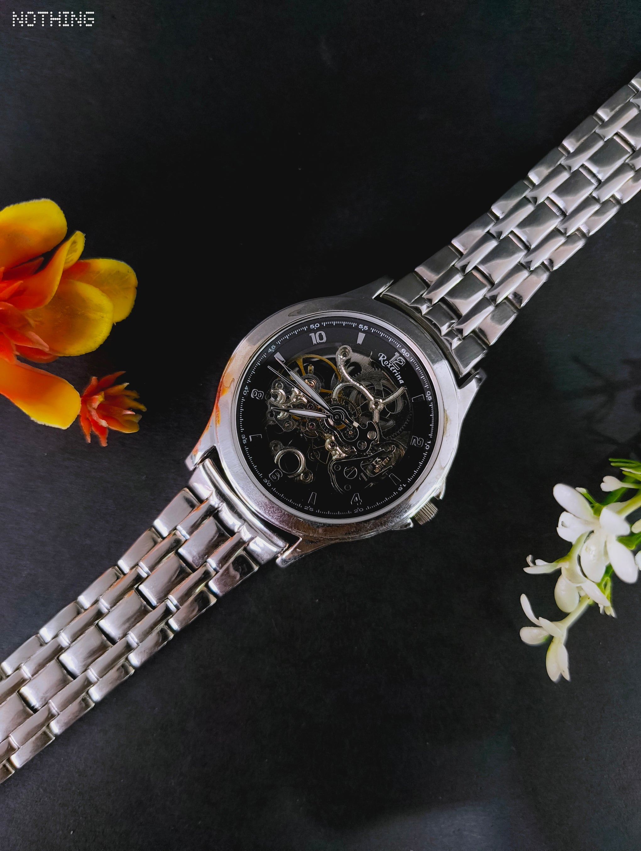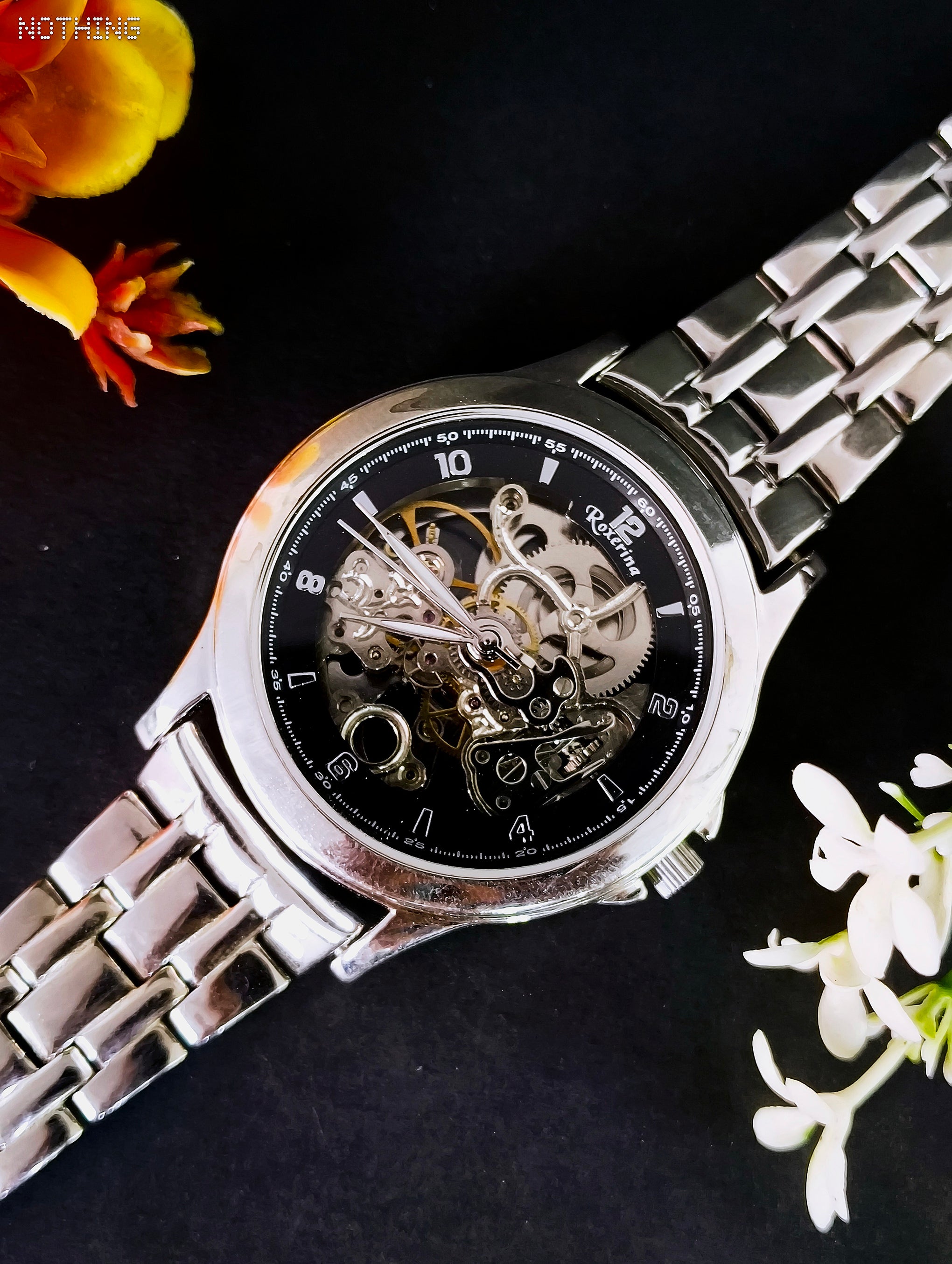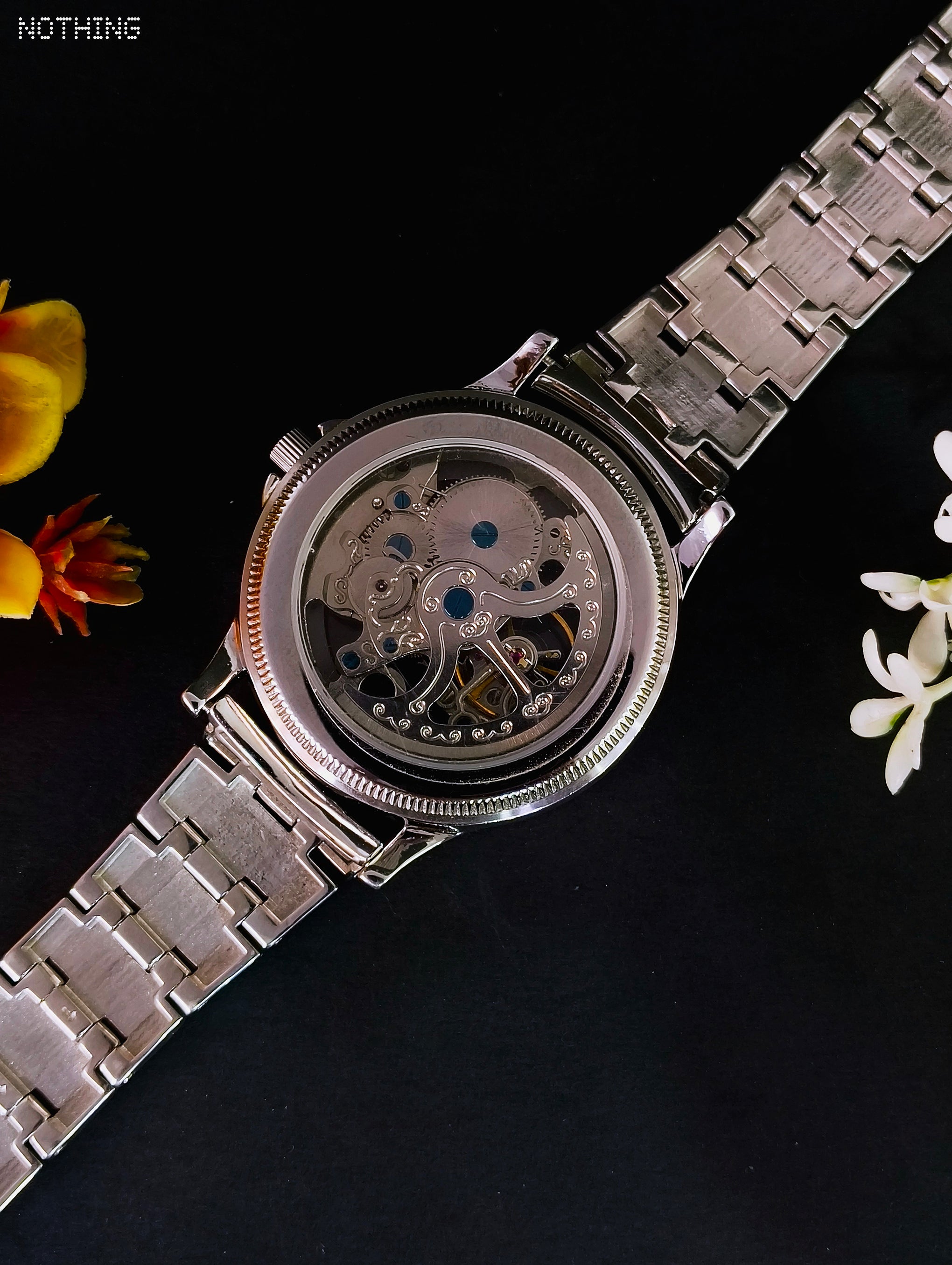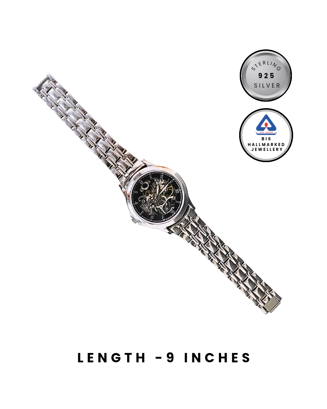 Redefine your wristwear with the RUKMI Skeleton Automatic. This watch is meticulously crafted from authentic 92.5 hallmarked sterling silver, offering a substantial weight and a brilliant, tarnish-resistant finish.