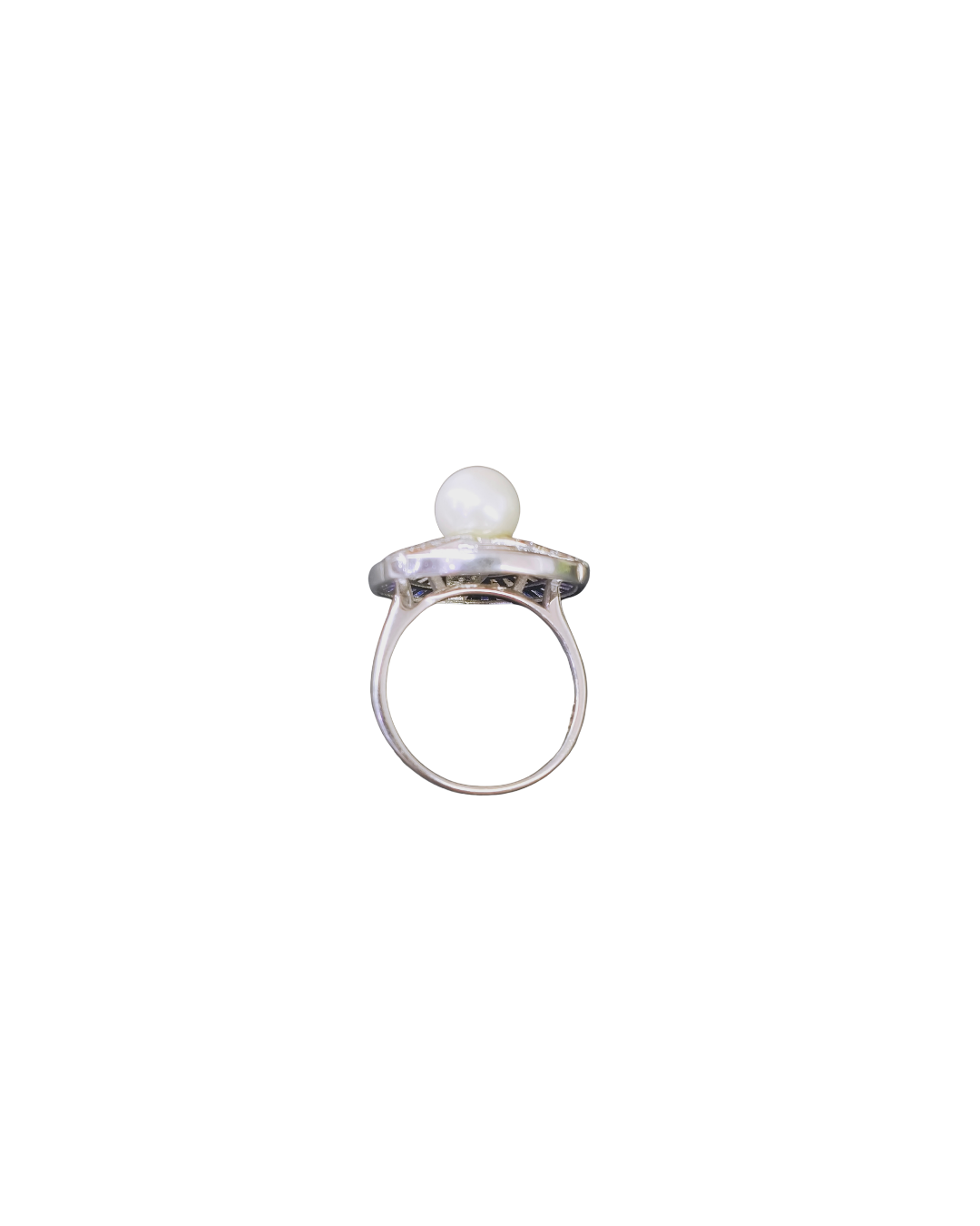 92.5 Sterling Silver Art Deco Pearl & Midnight Blue Statement Ring