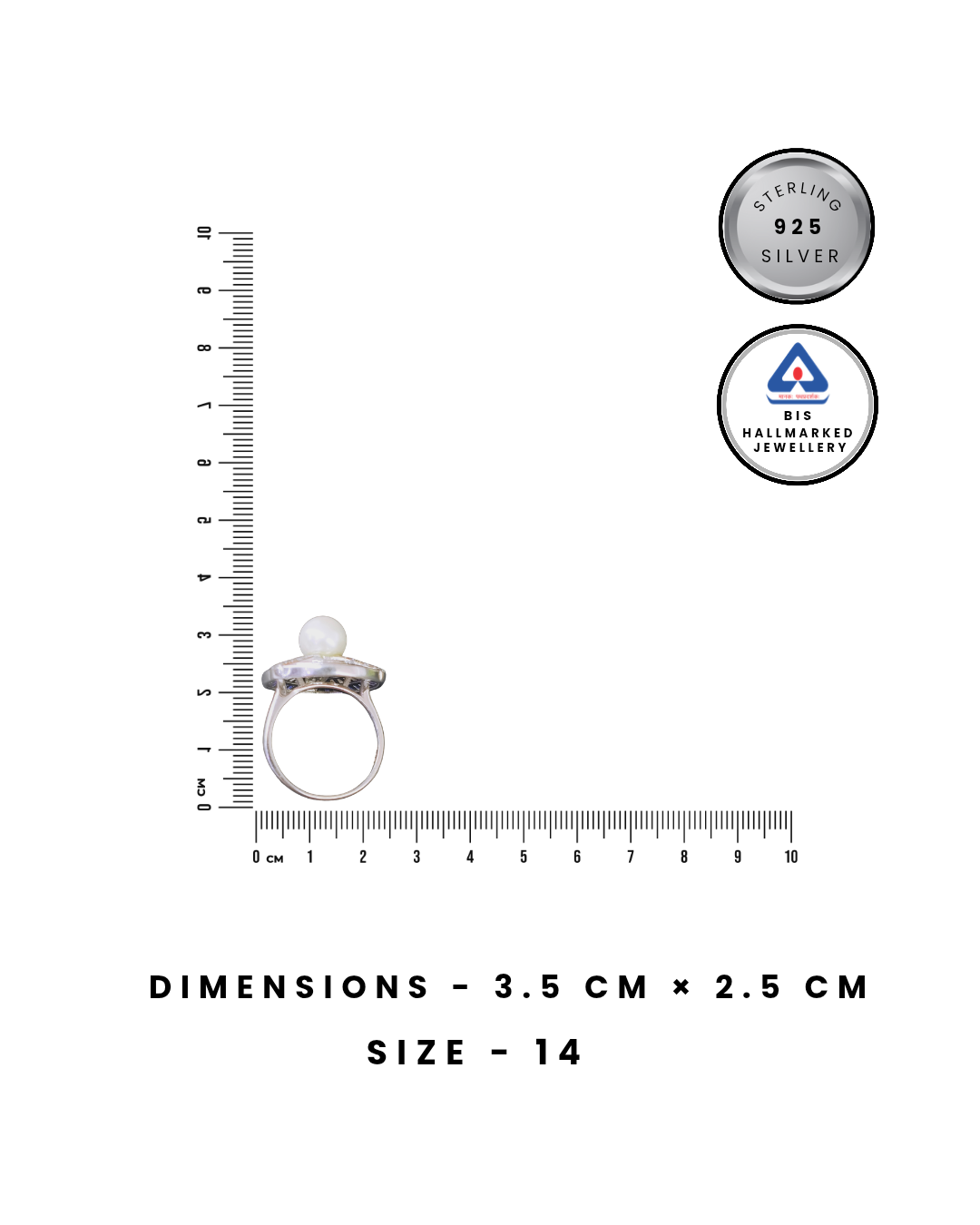 Command the room with the RUKMI Midnight Pearl Ring. Expertly crafted from authentic 92.5 hallmarked sterling silver, this statement piece features a brilliant rhodium-style finish that provides a sleek, mirror-like luster.