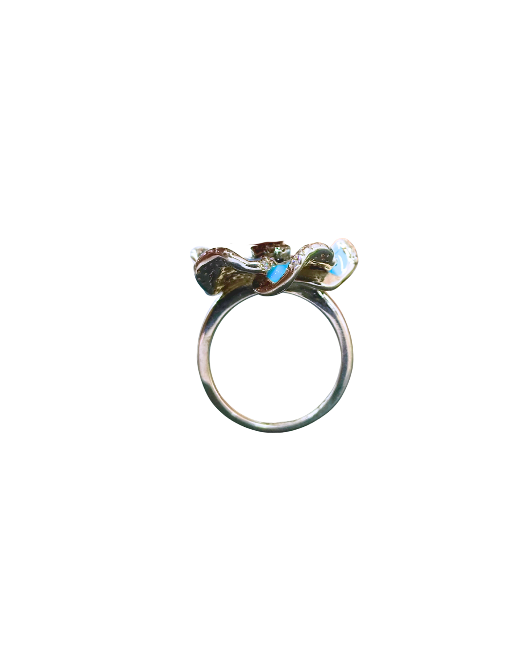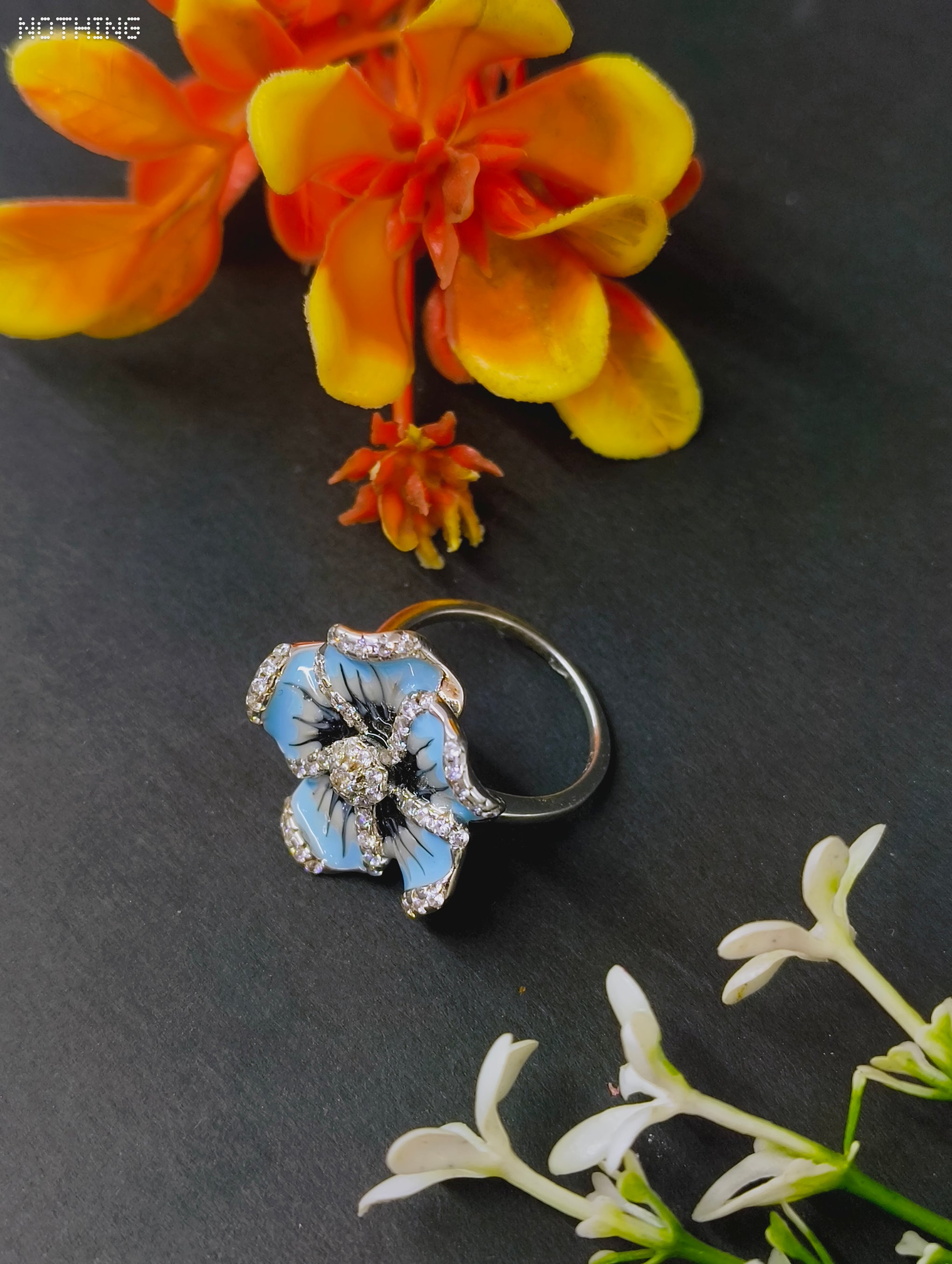Hand-Finished Enamel Artistry: Each petal is coated in a vibrant sky-blue enamel with intricate hand-painted details, making every ring a unique work of art.