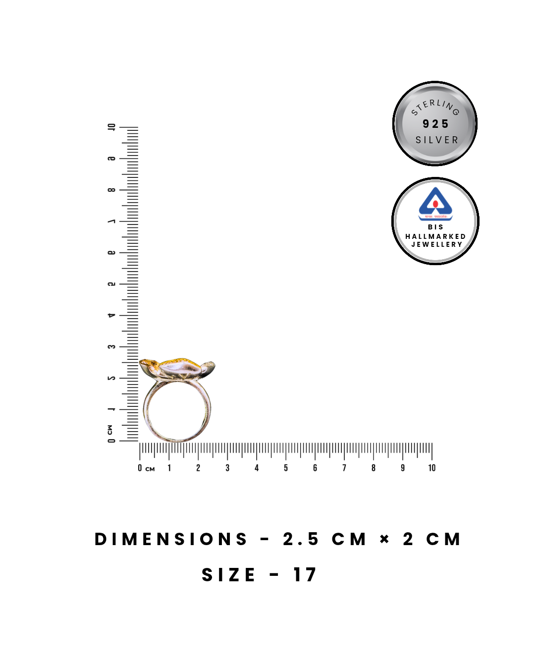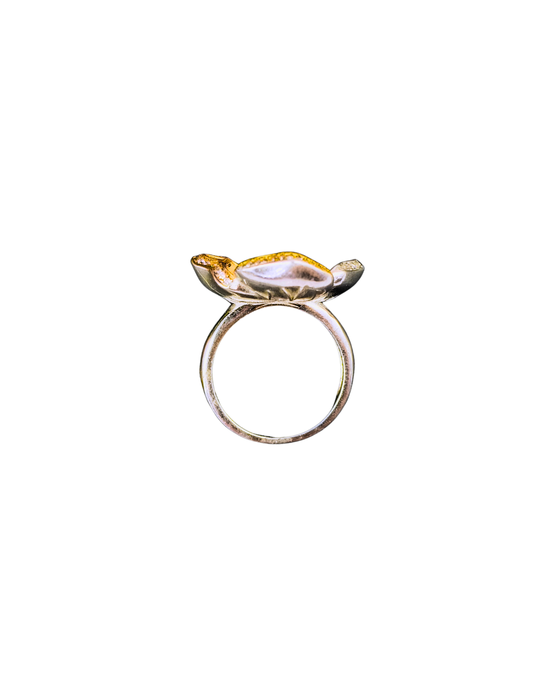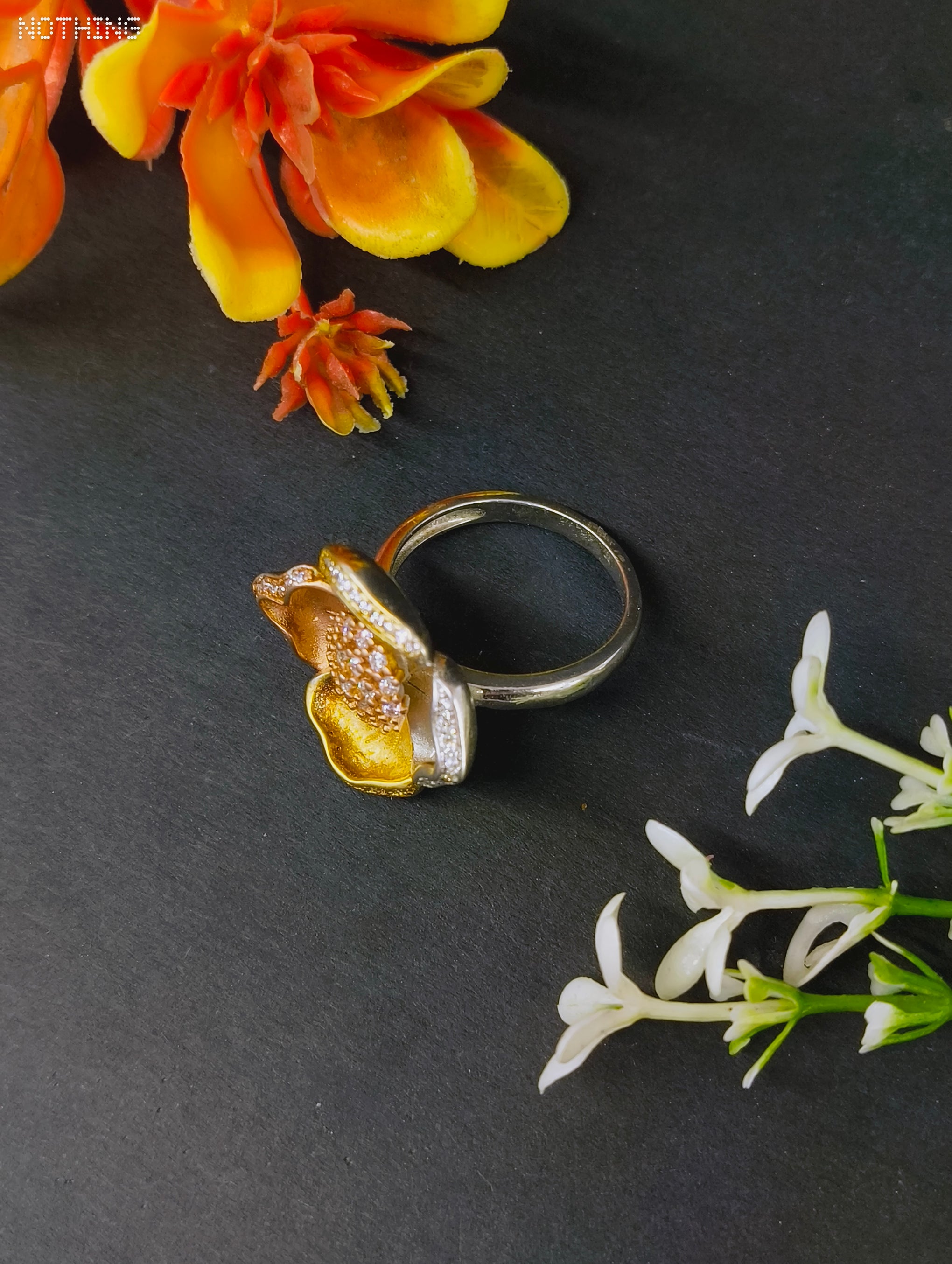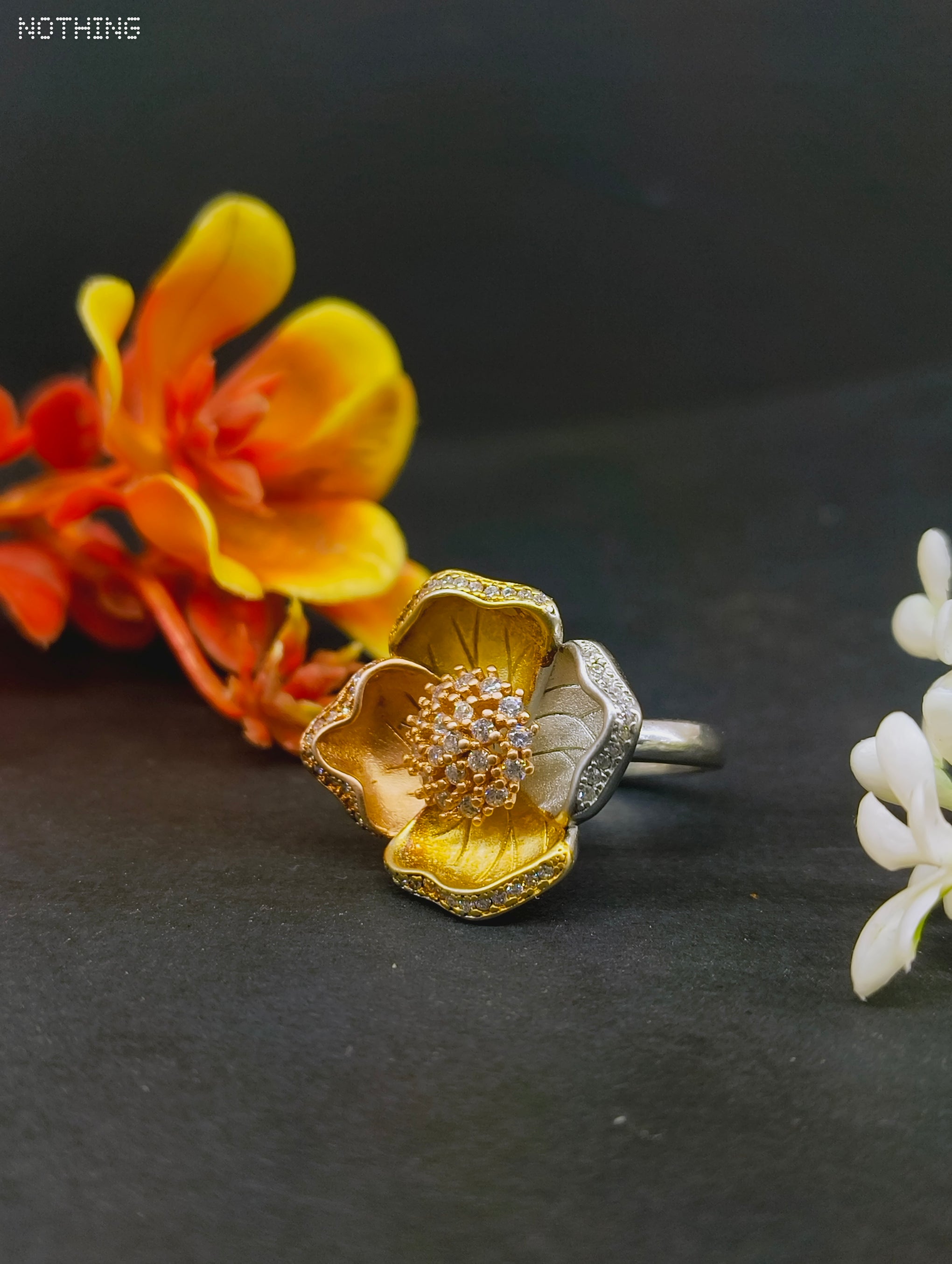 RUKMI 92.5 Sterling Silver "Golden Hibiscus" Two-Tone Statement Ring