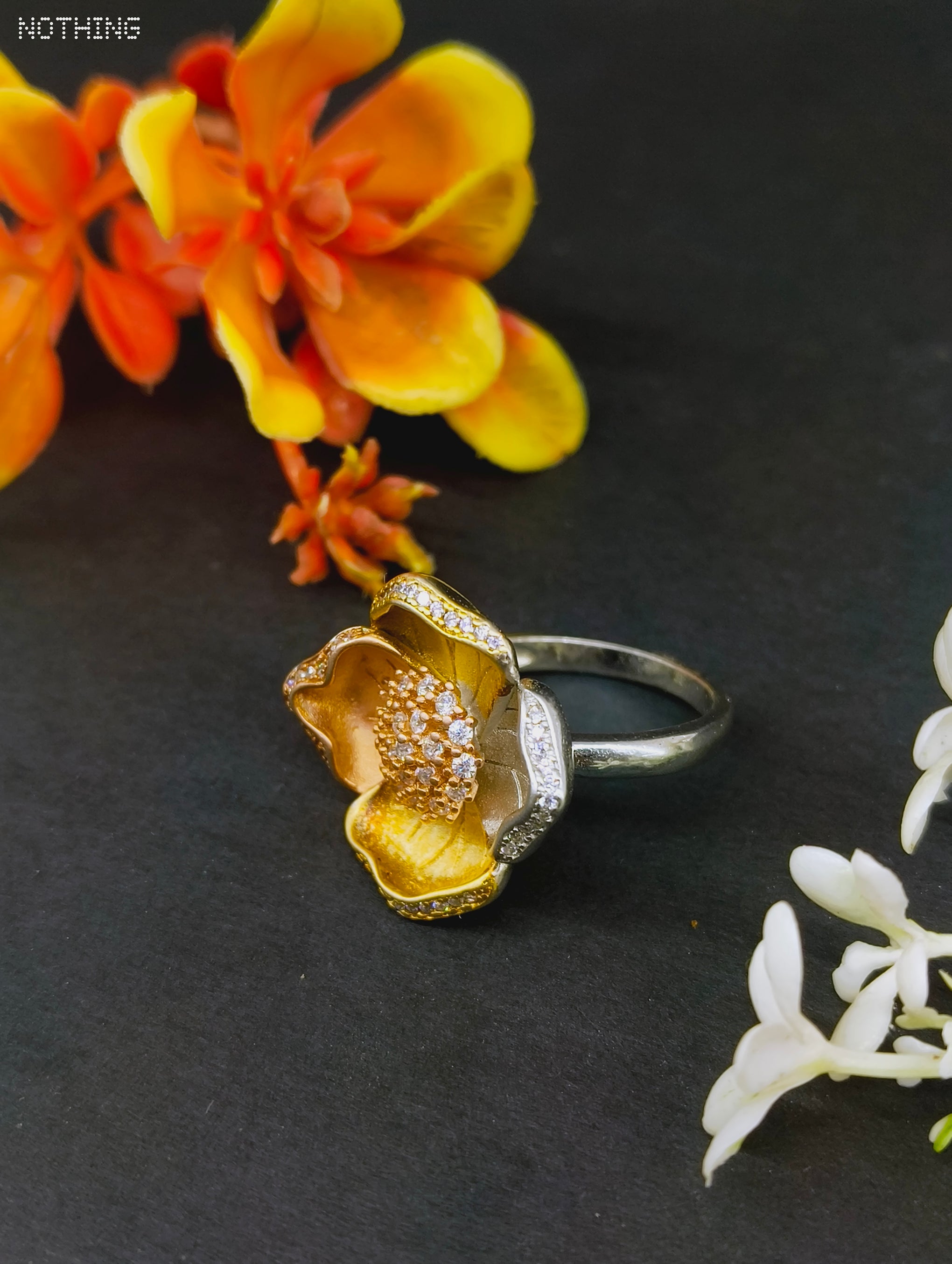 92.5 Sterling Silver "Golden Hibiscus" Two-Tone Statement Ring