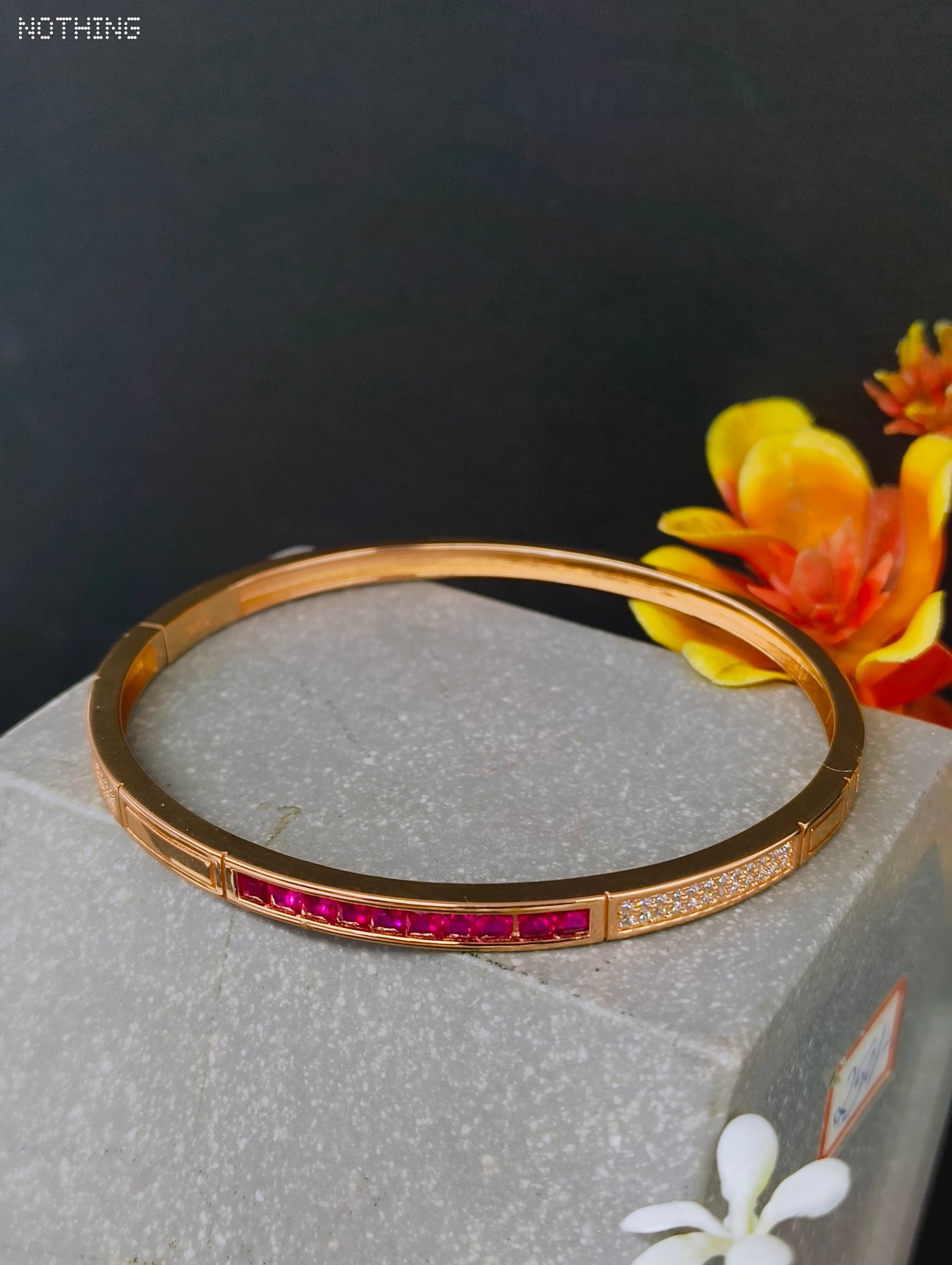 92.5 Sterling Silver Ruby Red & Rose Gold Luxury Kada