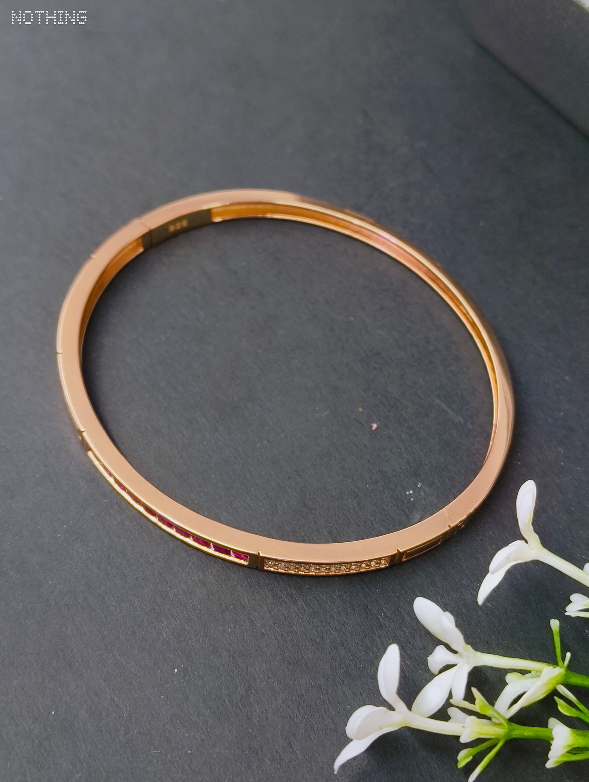 RUKMI 92.5 Sterling Silver Ruby Red & Rose Gold Luxury Kada