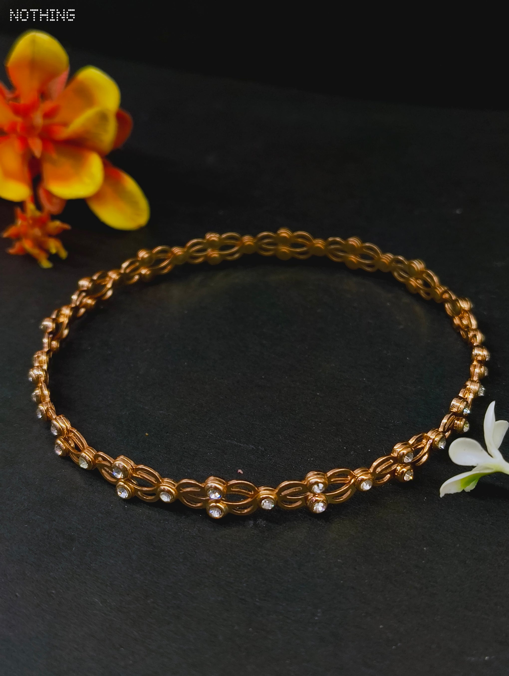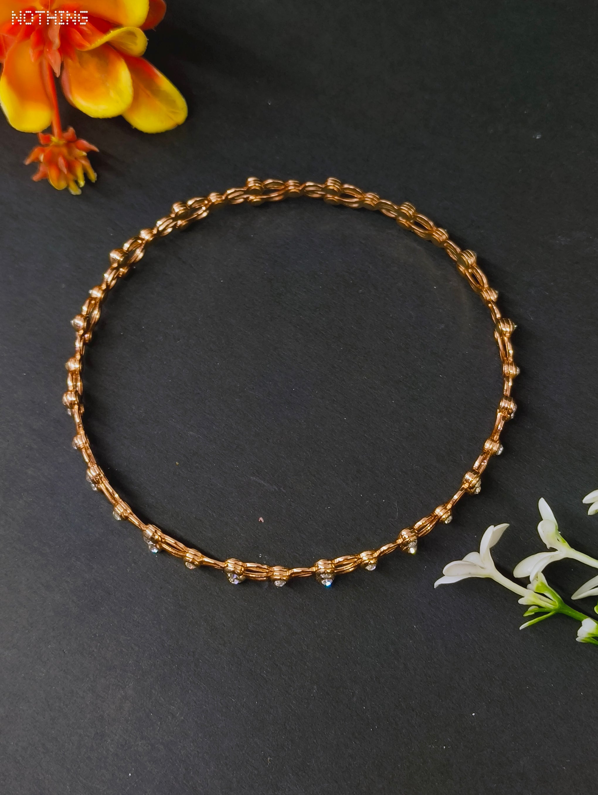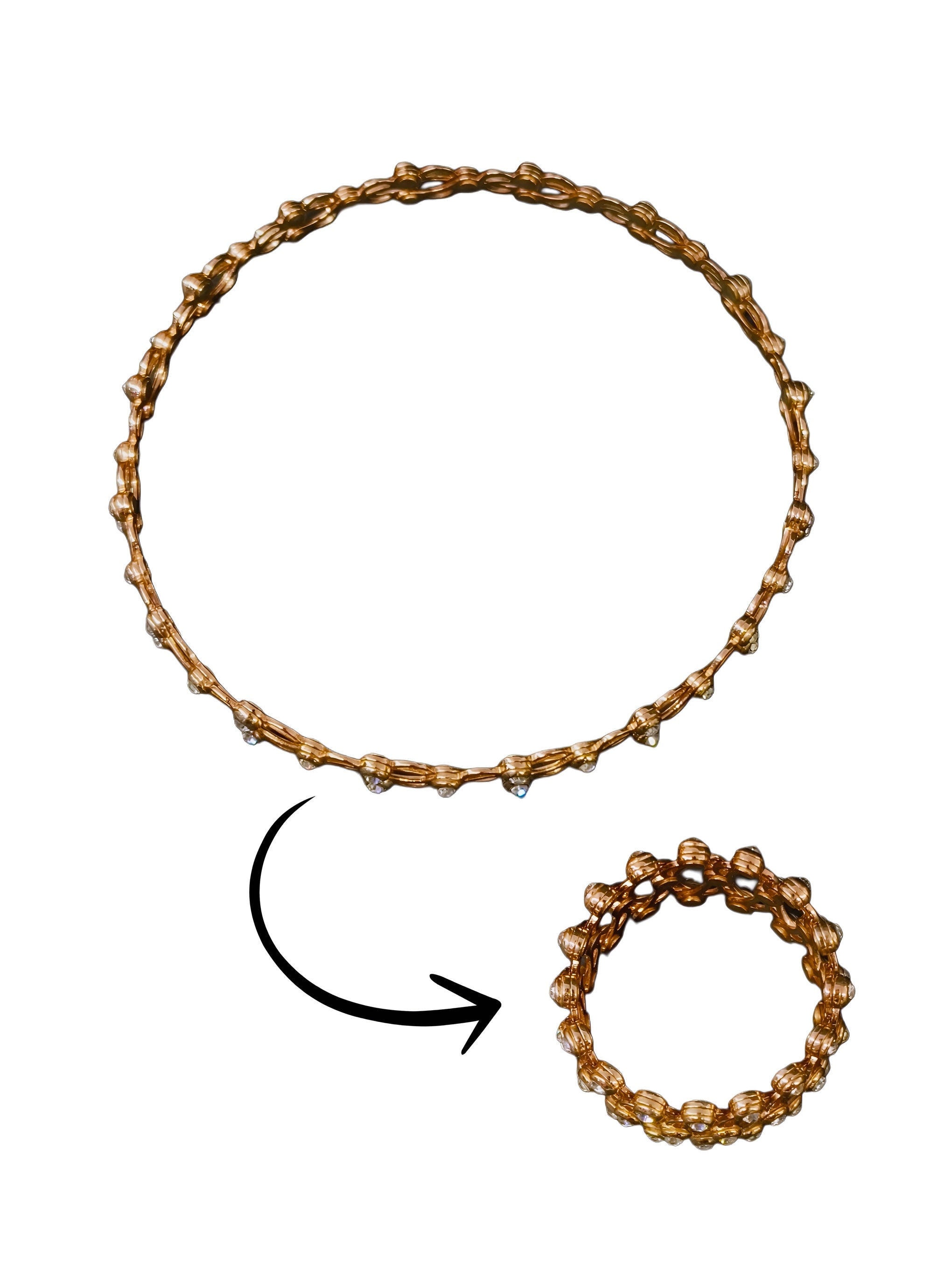 Experience the magic of transformable luxury with the RUKMI Magic Bangle. Meticulously crafted with a high-polish rose gold-tone finish, this unique piece features a flexible, interlocking honeycomb structure that allows it to expand and contract effortlessly.