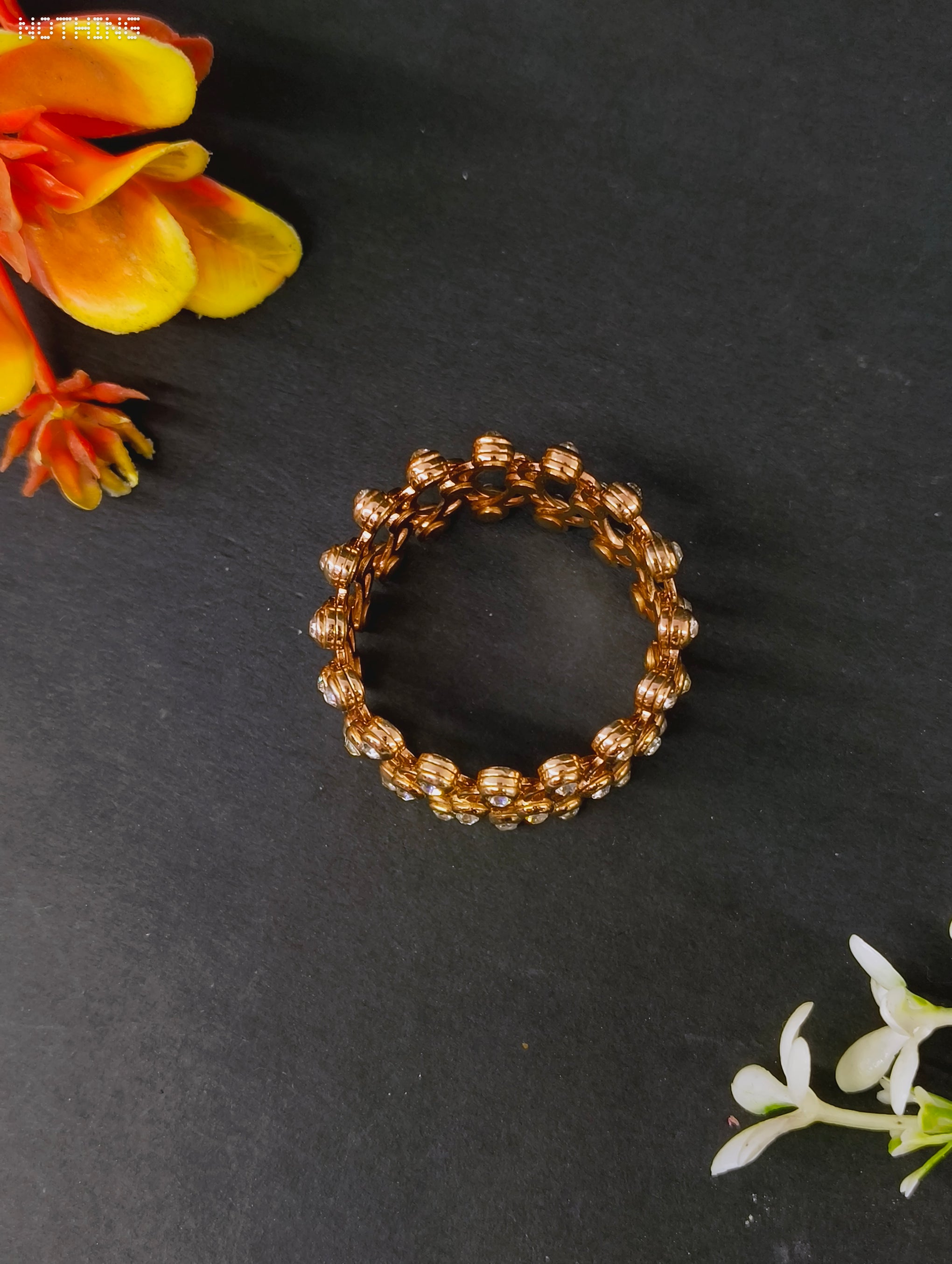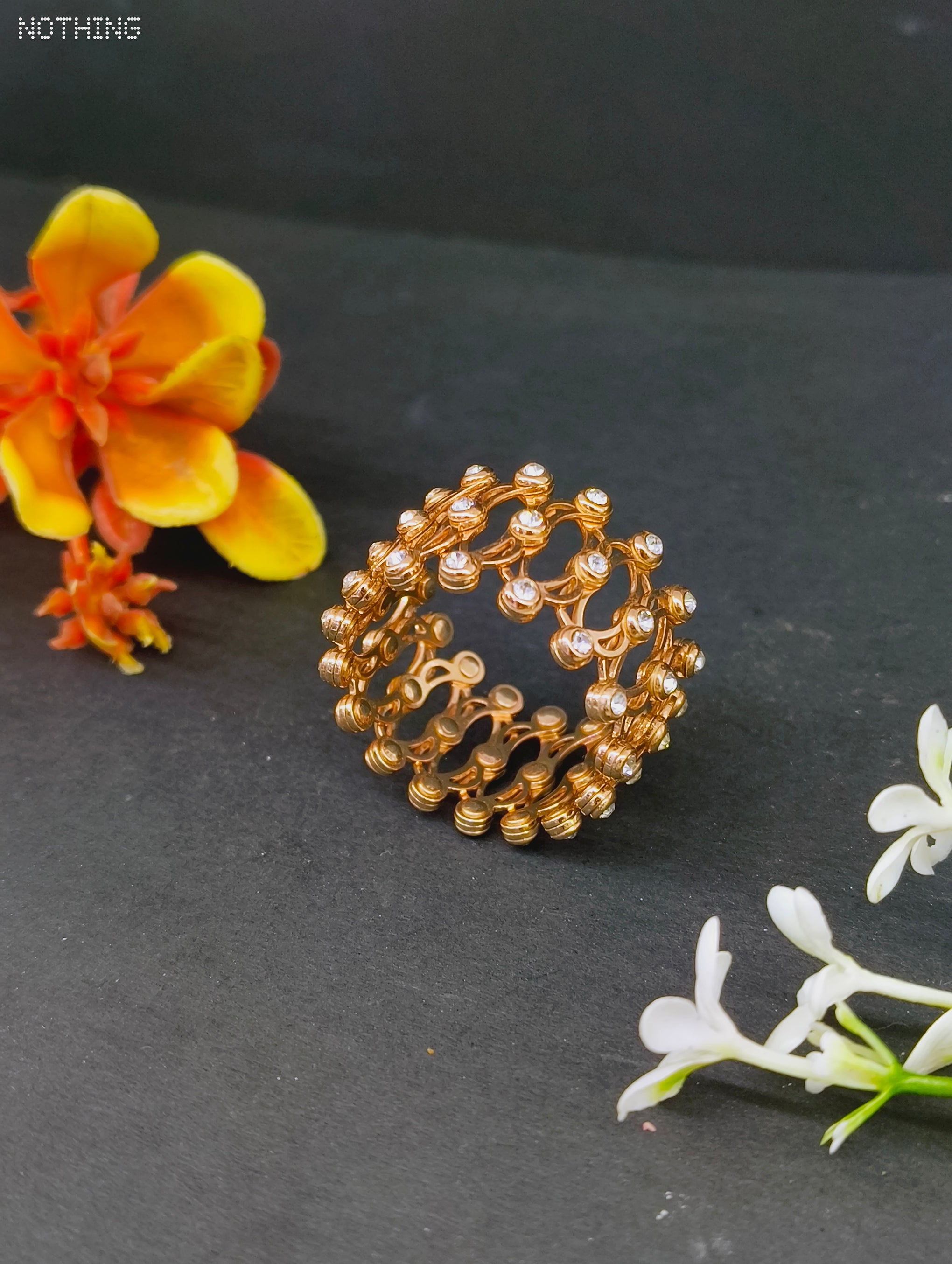 How to Style: Wear it as a chunky statement ring to the office, then simply expand it into a bracelet for your evening dinner. It pairs beautifully with our Rose Gold Baguette Kada for a layered, high-fashion wrist stack.