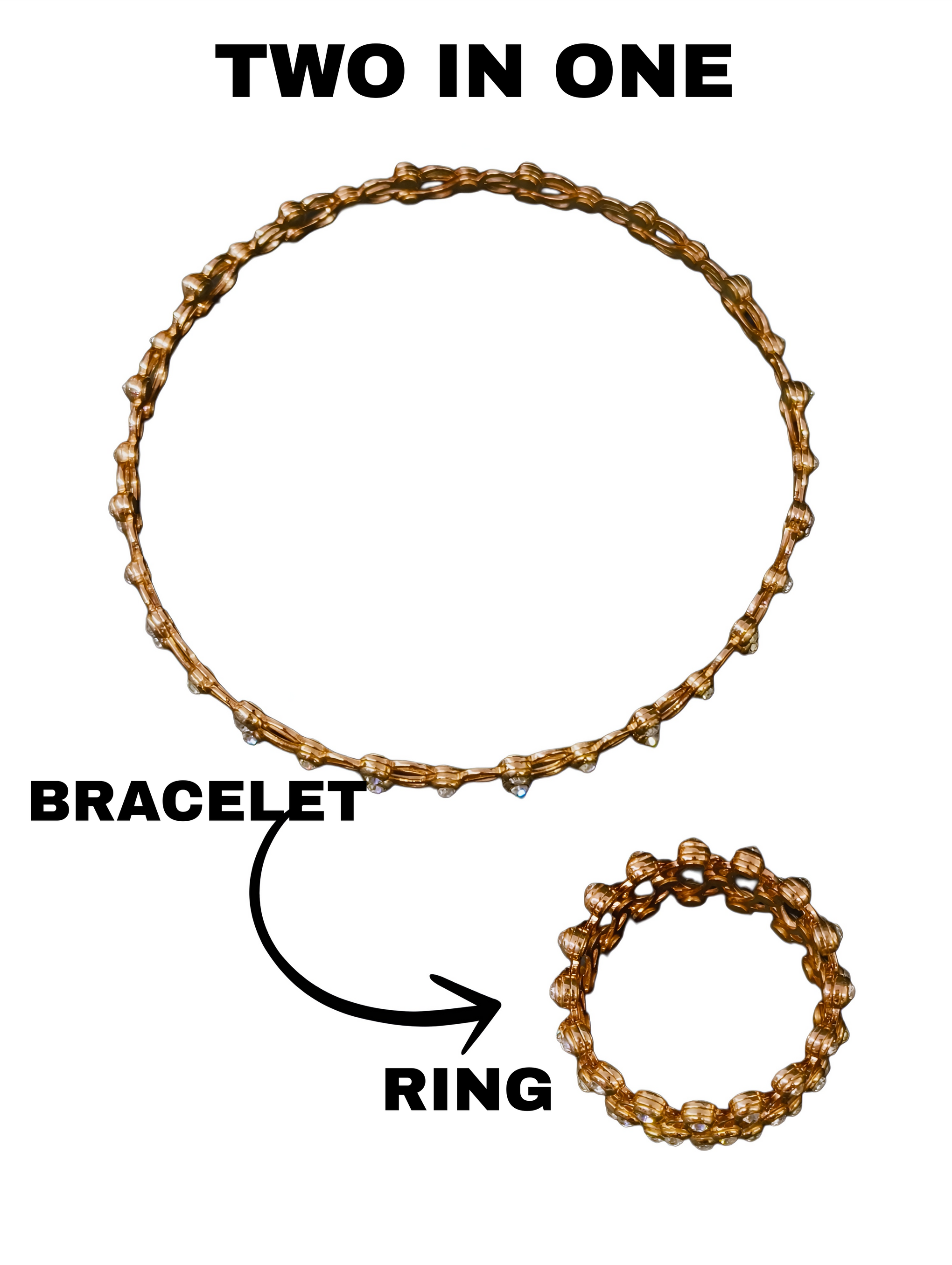 • Innovative Two-in-One Design: Features a patented expanding mechanism that transforms the piece from a ring into a full-sized bracelet in seconds.