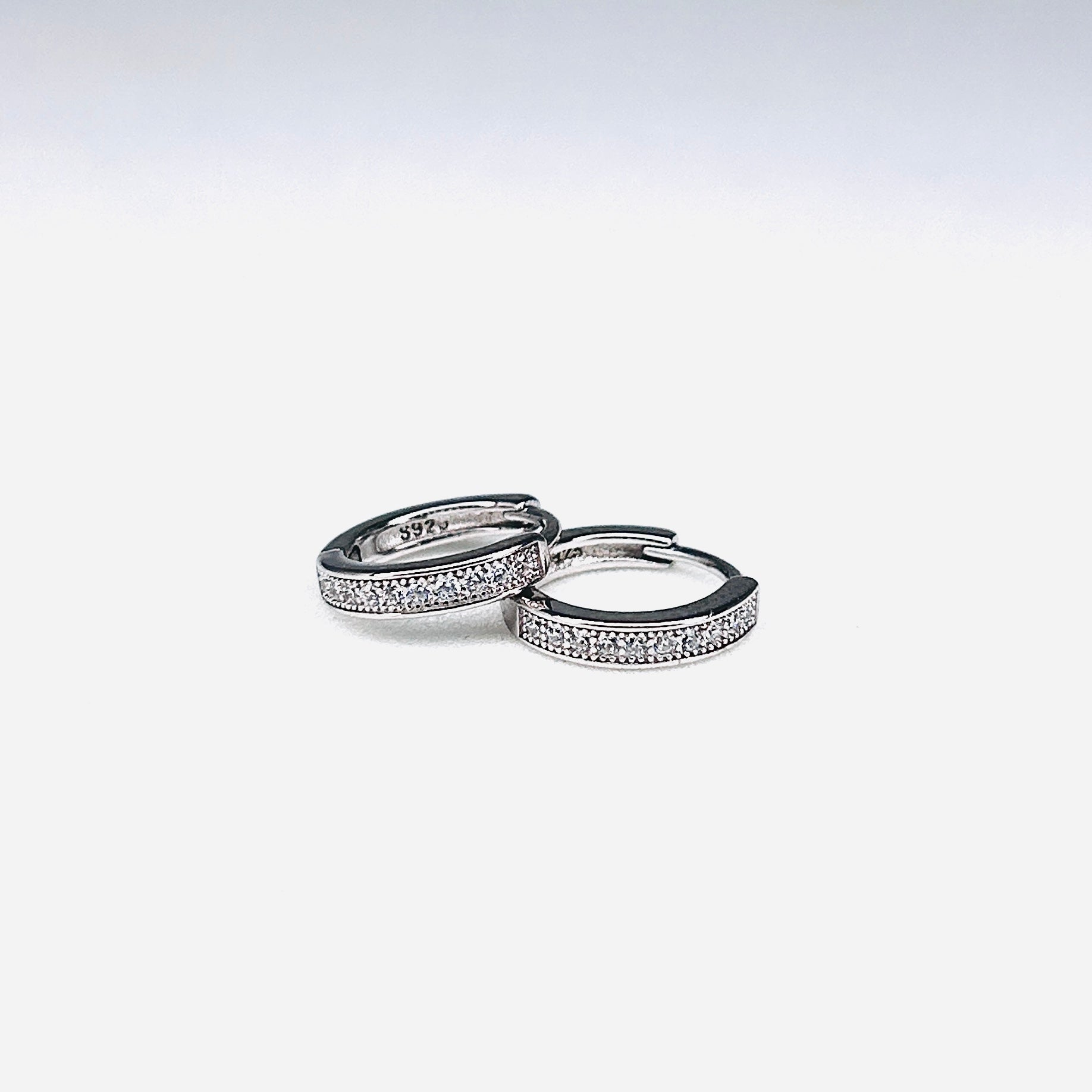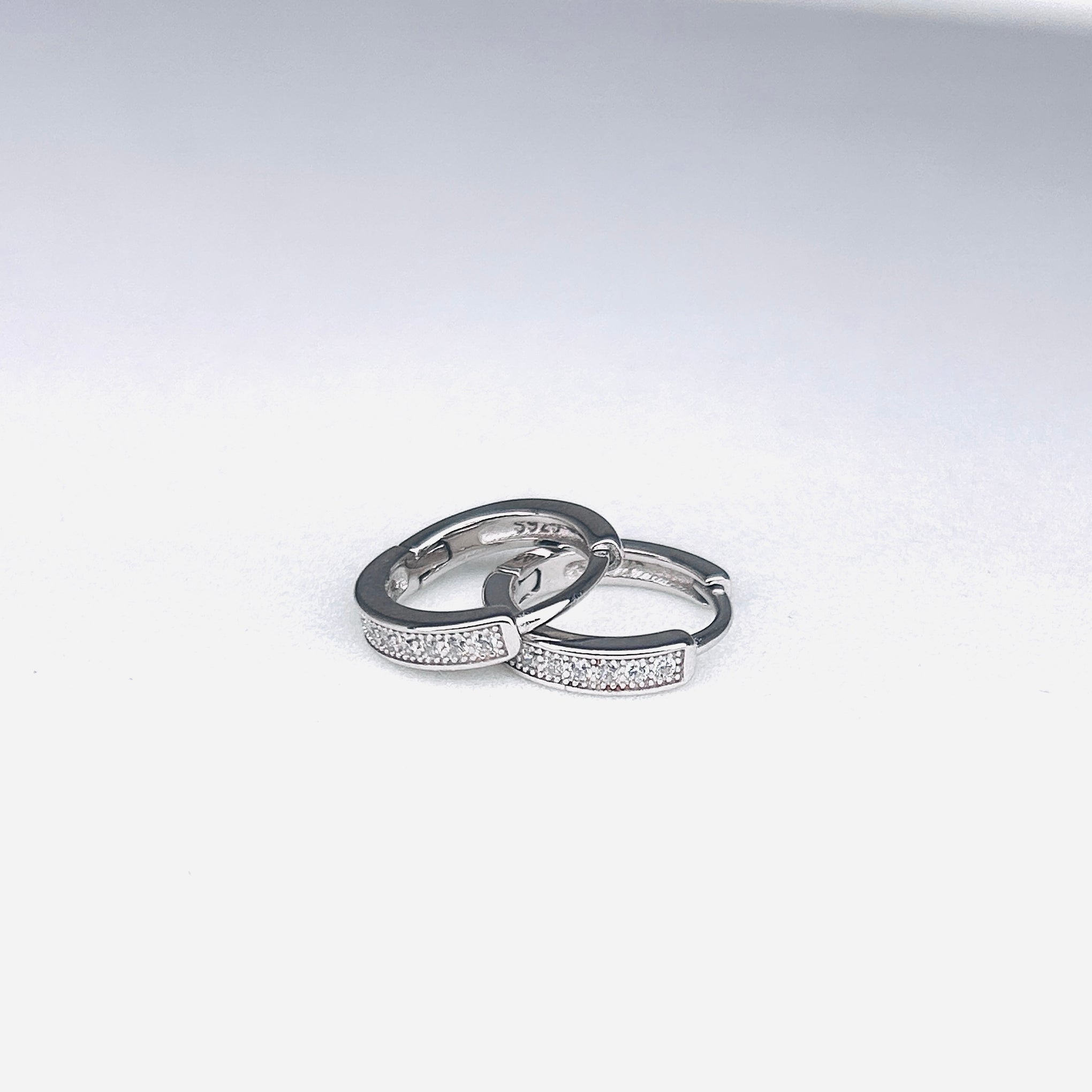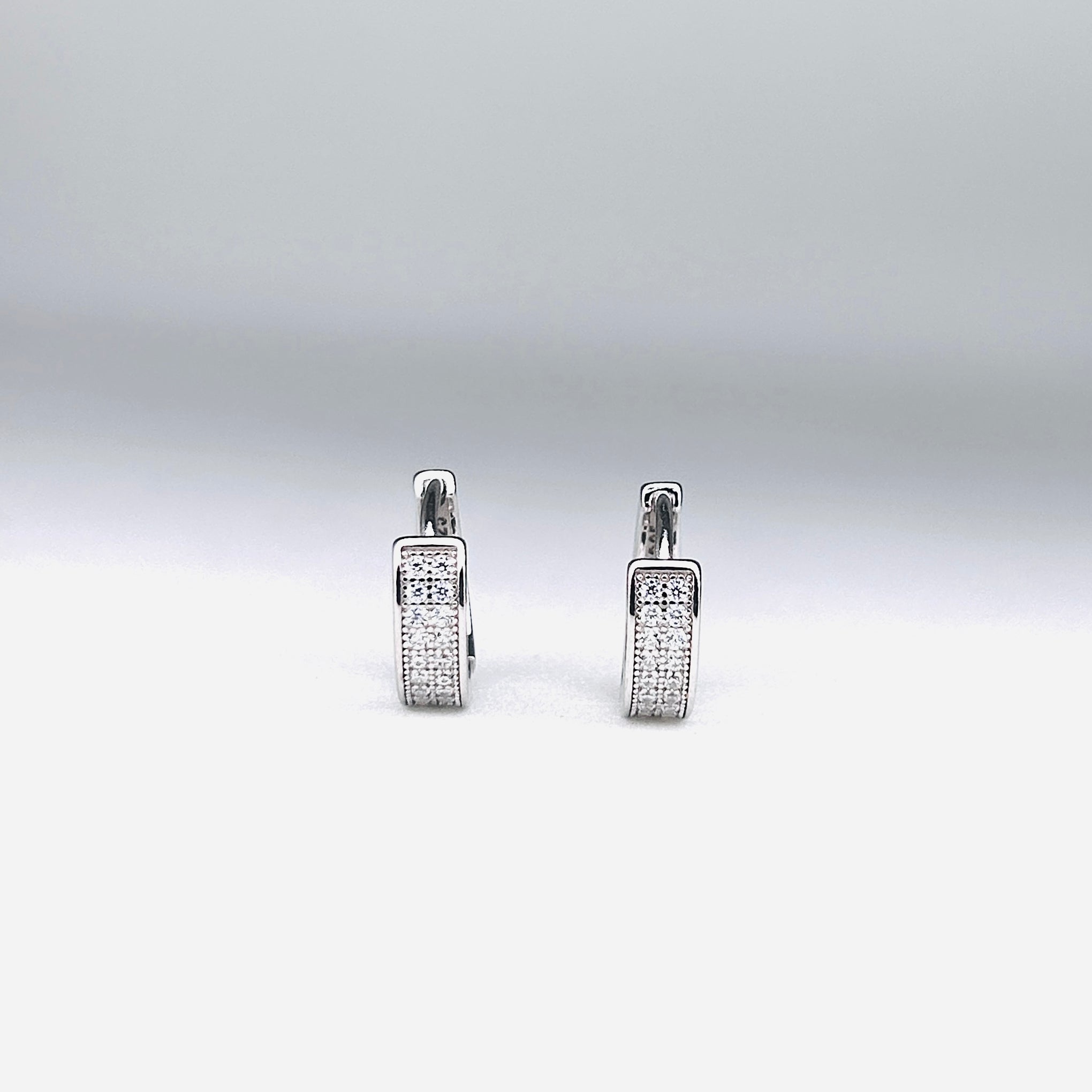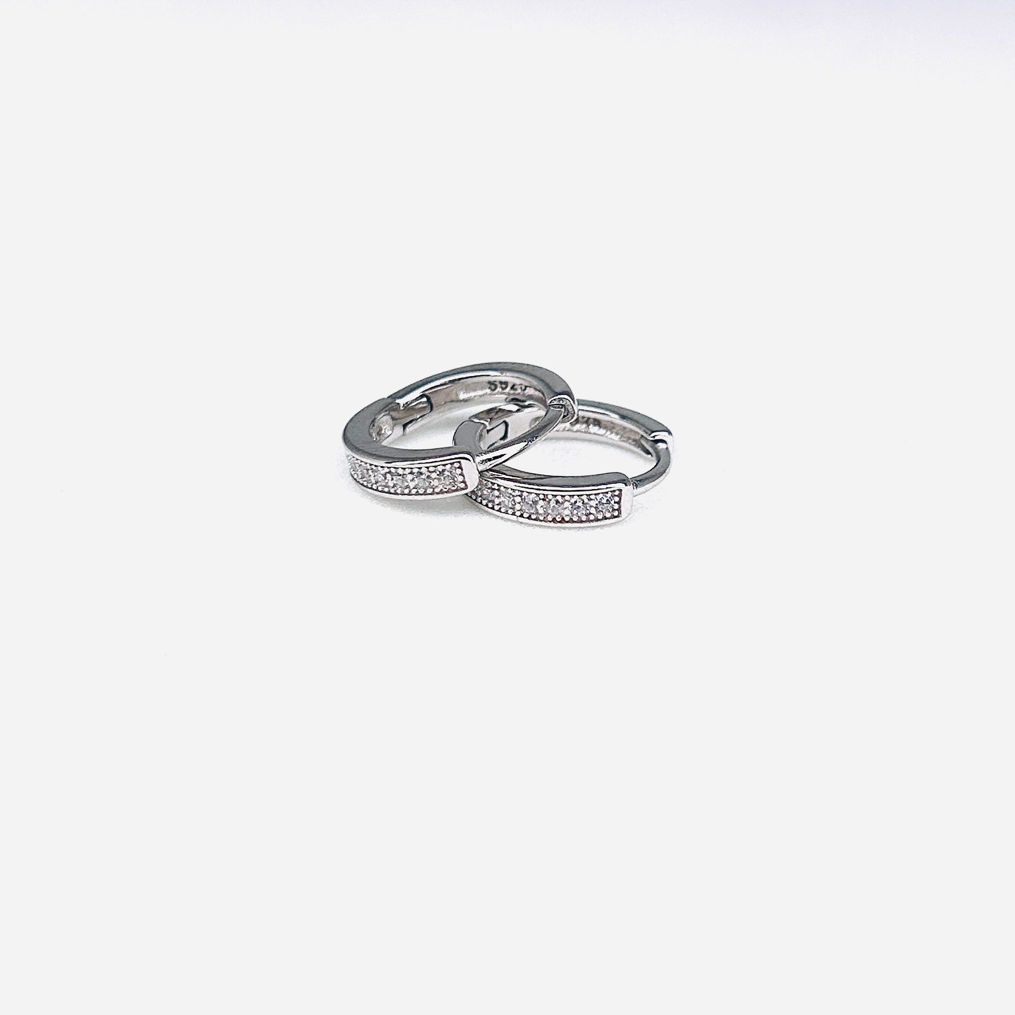Silver CZ Stone With Double Line Earring