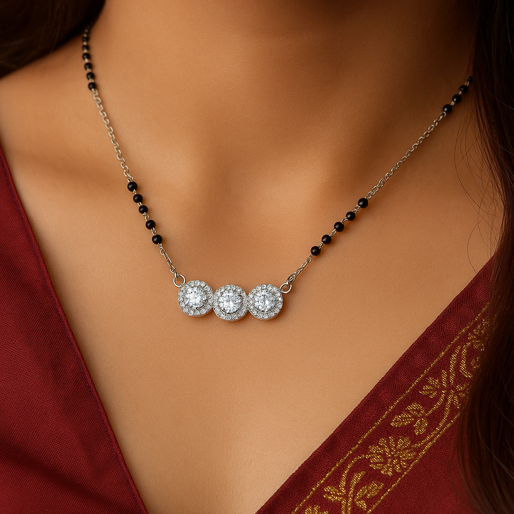 | Material type : Sterling Silver Metal type :925 Sterling Silver Chain type : Link Gem type : Zircon stones & Premium quality beads Occasion type : Wedding Bachelorette Party, Bridal Shower, Birthday, Anniversary Country of Origin India |
