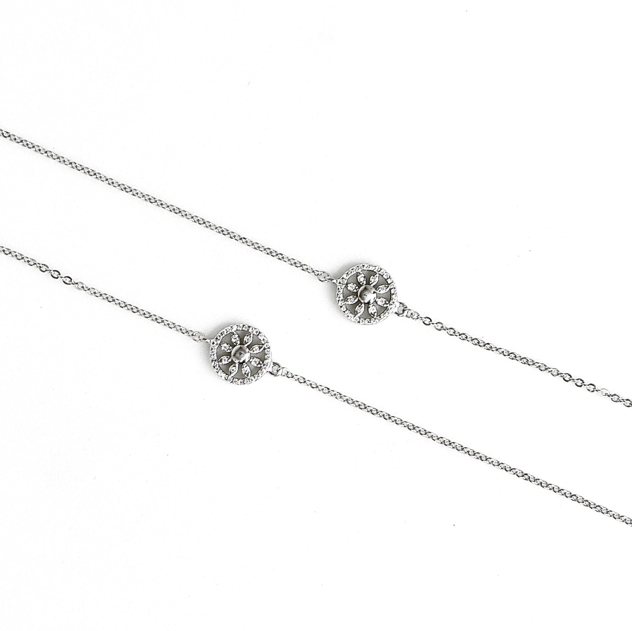 | Material type : Sterling Silver Metal type :925 Sterling Silver Chain type : Link Gem type : Zircon stones & Premium quality beads Occasion type : Wedding Bachelorette Party, Bridal Shower, Happy Birthday, Anniversary Country of Origin India |