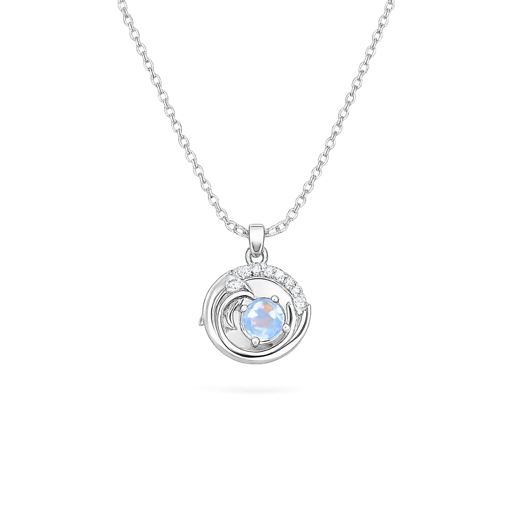 Silver Dolphin & Water Drop Pendant Necklace Chain Pendant