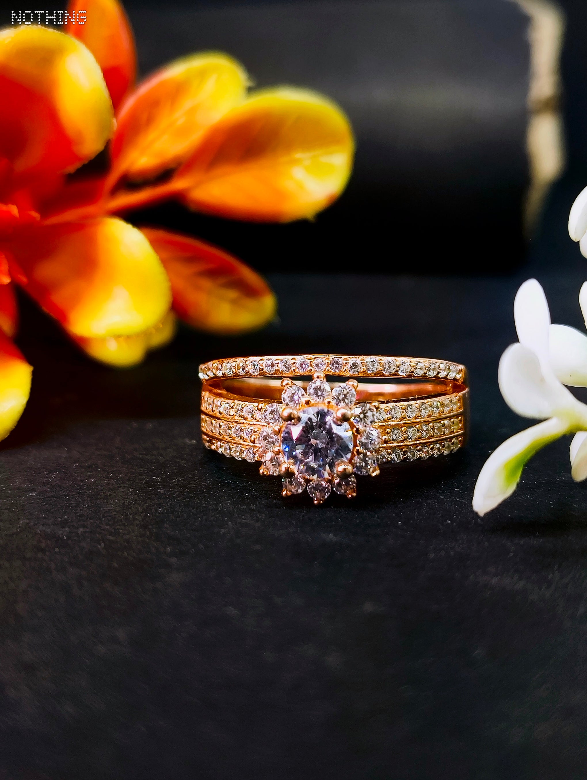 Finished in a premium rose gold plating, this ring offers a soft, romantic glow that perfectly complements the icy sparkle of the stones, making it an ideal choice for engagements, anniversaries, or gala events.