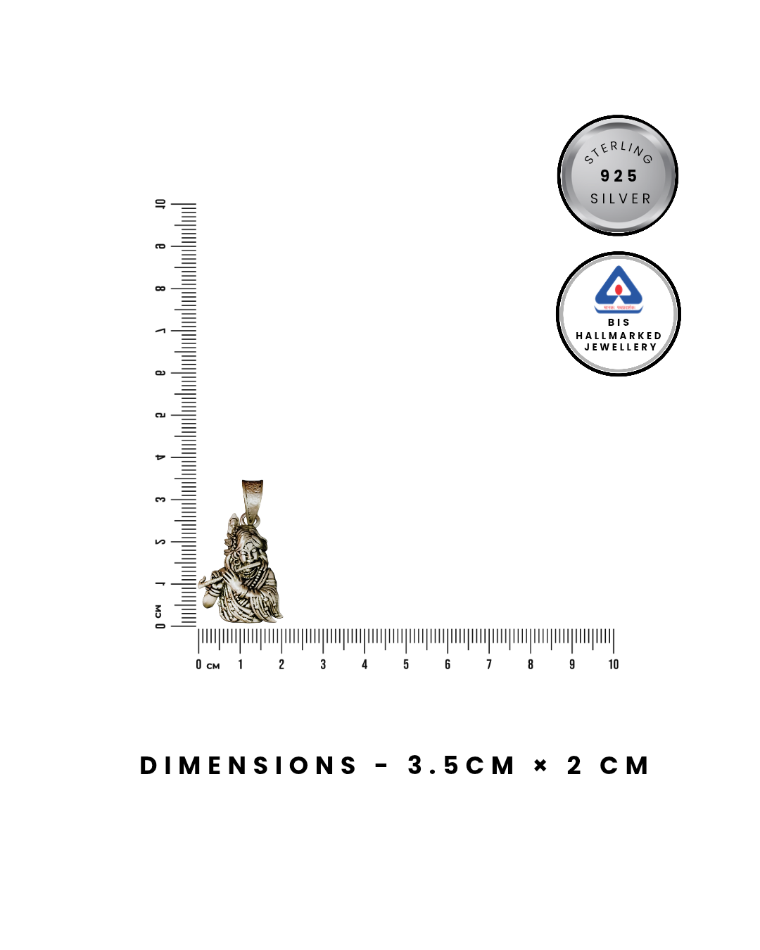 RUKMI 92.5 Sterling Silver Lord Krishna "Murali Manohar" Religious Pendant