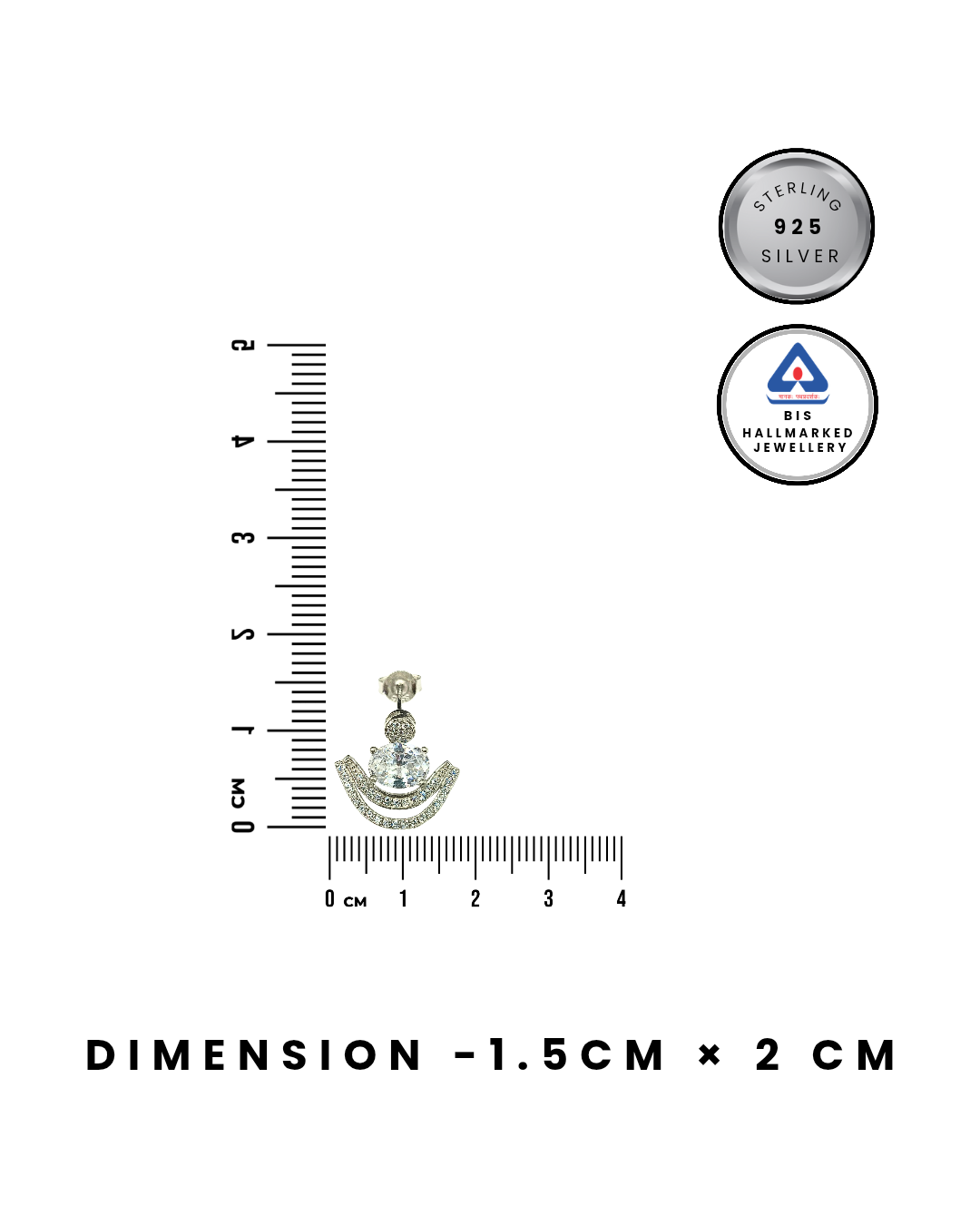 RUKMI 92.5 Sterling Silver Oval Solitaire & Crescent Jacket Earrings