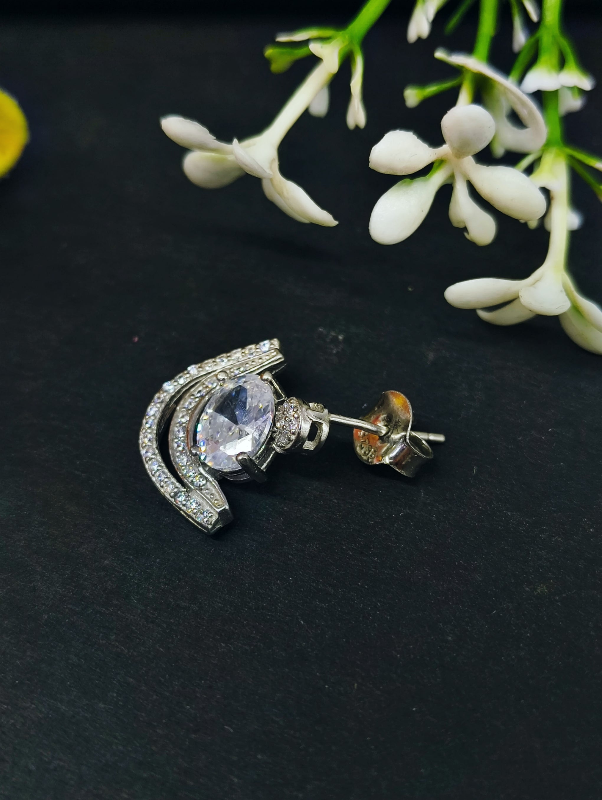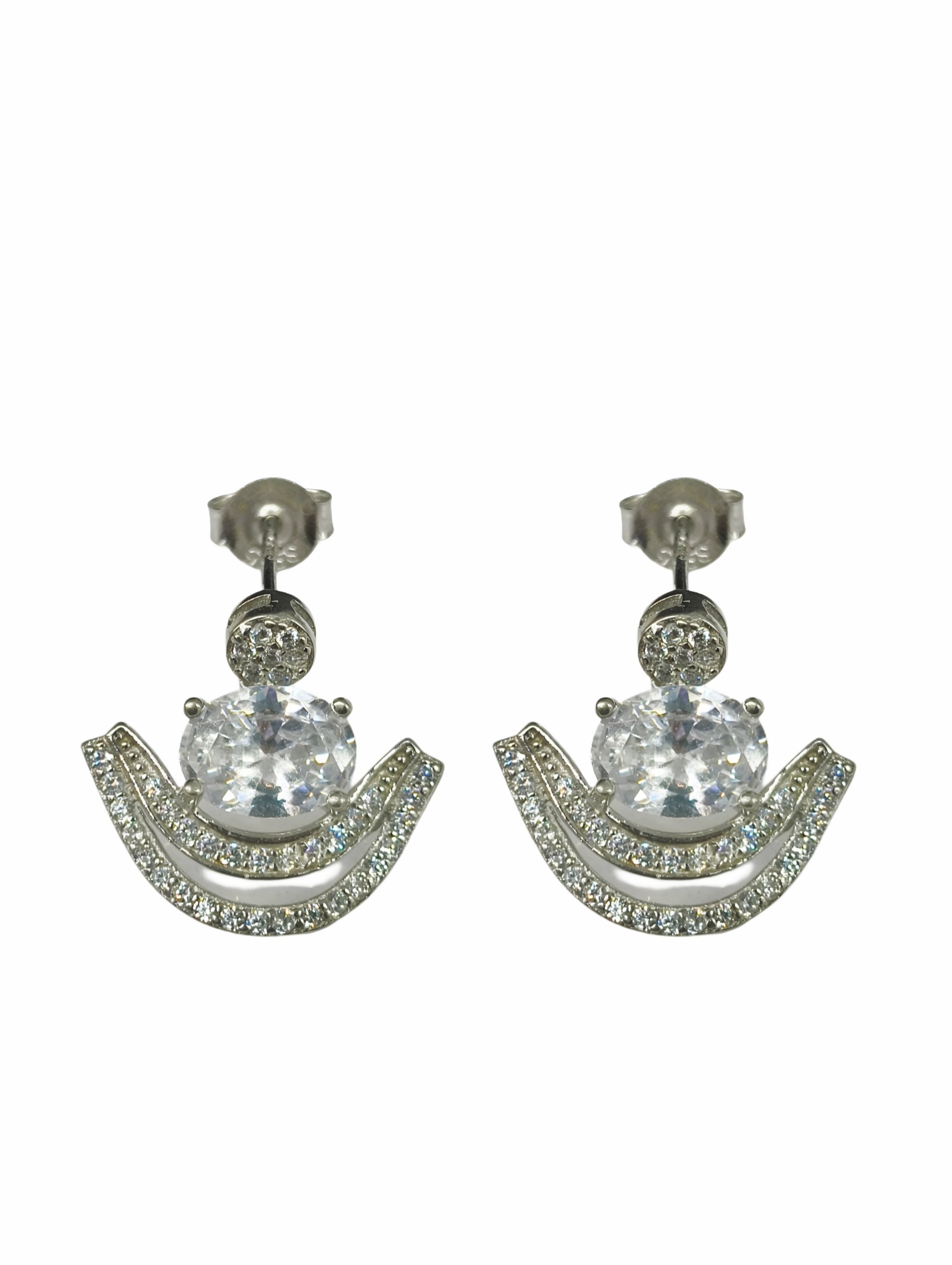 92.5 Sterling Silver Oval Solitaire & Crescent Jacket Earrings